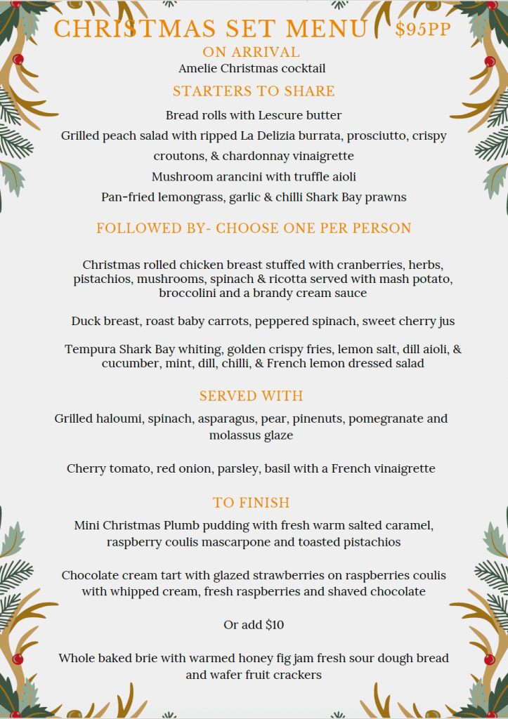Available to groups of 4, groups larger than 10 must go onto this set menu